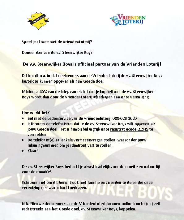 • v.v.Steenwijker Boys is officieel partner van de VriendenLoterij (KLIK OP DE FOTO)